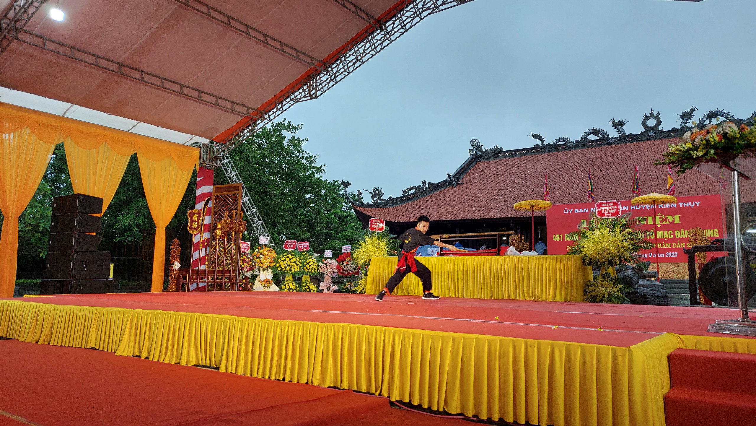 | Biểu diễn võ thuật được tái hiện lại trong Lễ kỷ niệm 481 năm ngày mất của Thái tổ Mạc Đăng Dung |