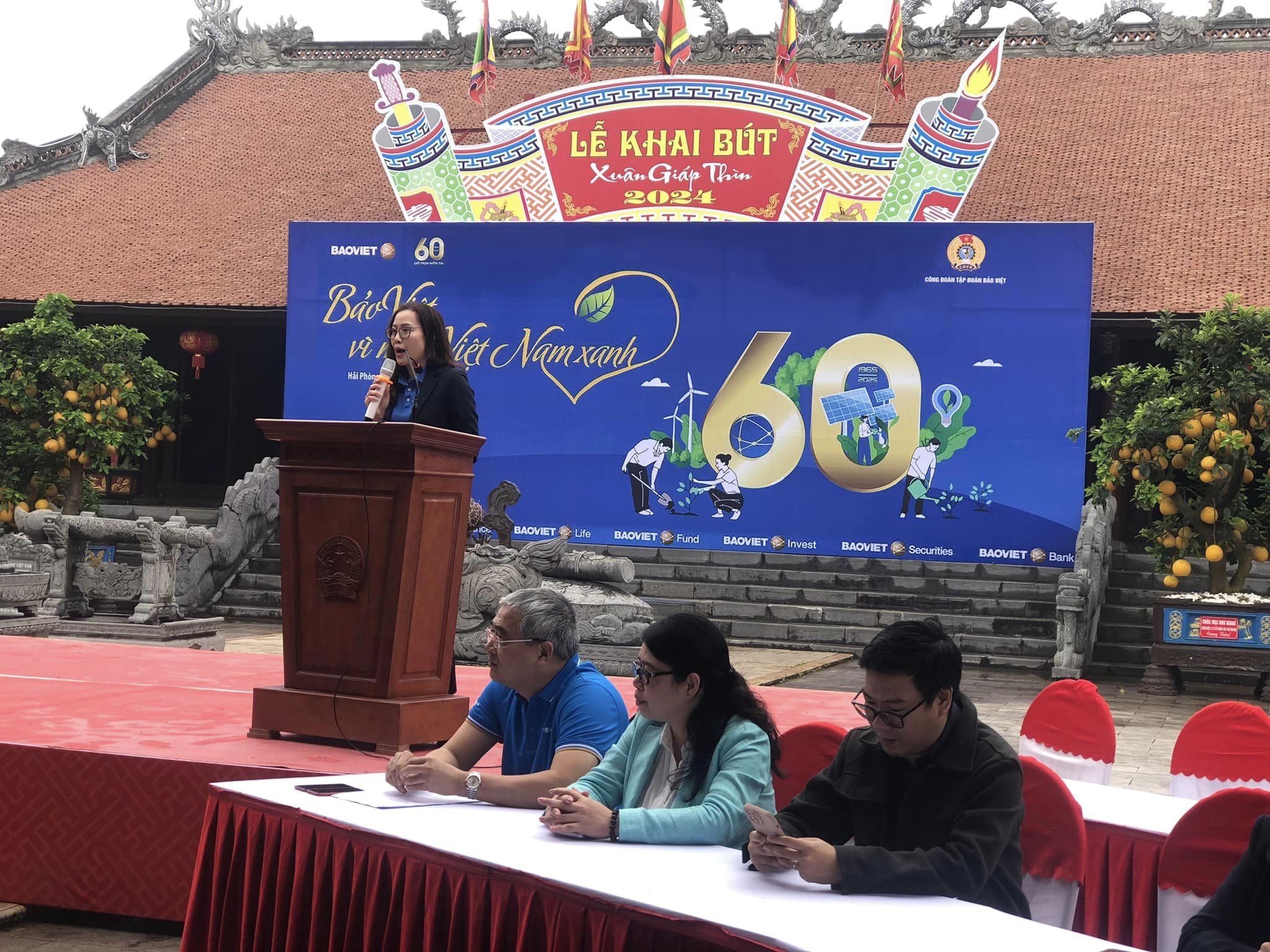 Sáng ngày 5/3 tại Khu di tích vương triều Mạc, Công đoàn tập đoàn Bảo Việt Bộ tài chính phối hợp với UBND huyện Kiến Thụy tổ chức chương trình tết trồng cây Bảo Việt vì một Việt Nam xanh năm 2024. Tới dự chương trình: về phía công đoàn Bộ Tài Chính có bà: Ngô Thị Hồng Nhung, chủ tịch công đoàn Bộ Tài Chính; về phía Tập đoàn Bảo Việt có ông: Phạm Việt Hùng, phó chủ tịch công đoàn, giám đốc ngân hàng CPTM Bảo Việt chi nhánh Hải Phòng; về phía UBND huyện Kiến Thụy có đại diện lãnh đạo các phòng, ban và lãnh đạo UBND xã Ngũ Đoan.