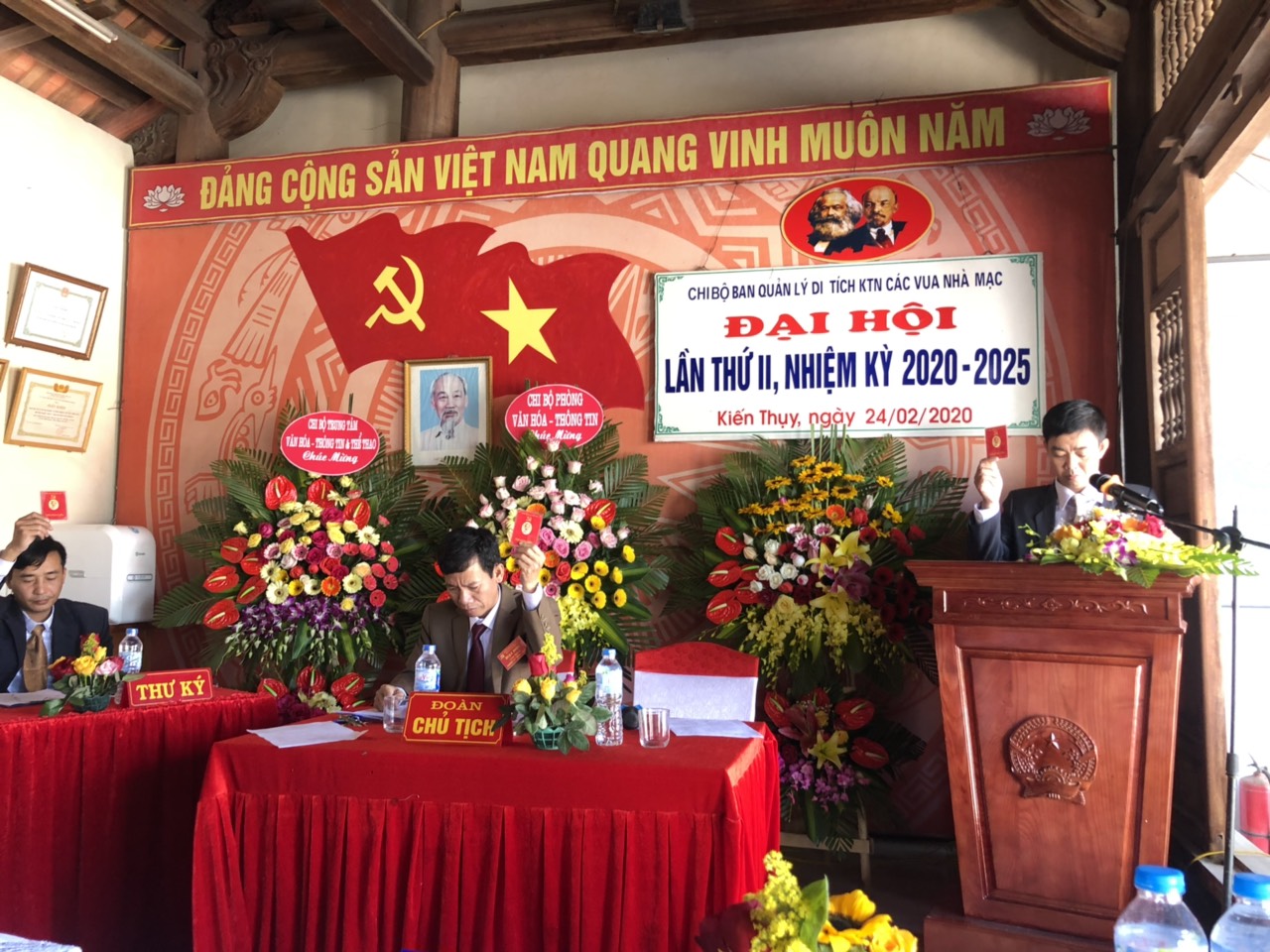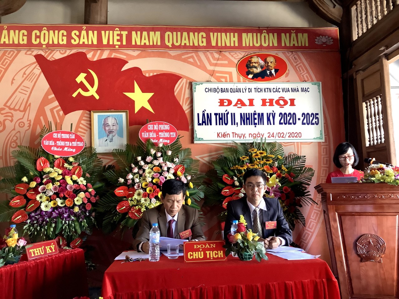 Ngày 24/02/2020 tại Khu tưởng niệm Vương triều Mạc, chi bộ Ban quản lý Di tích KTN các Vua nhà Mạc long trọng tổ chức Đại hội chi bộ lần thứ II, nhiệm lỳ 2020 – 2025. Về dự và chỉ đạo đại hội có các đồng chí: đ/c Ngô Quang Nam, ủy viên Ban thường vụ Huyện ủy – Trưởng ban Tuyên giáo – Giám đốc Trung tâm Bồi dưỡng chính trị huyện; đ/c Phạm Thị Vinh, Phó chủ tịch UBND huyện; đại diện lãnh đạo Phòng Văn hóa và Thông tin, Trung tâm Văn hóa – Thông tin và Thể thao cùng các đồng chí trong tổ công tác số 2.