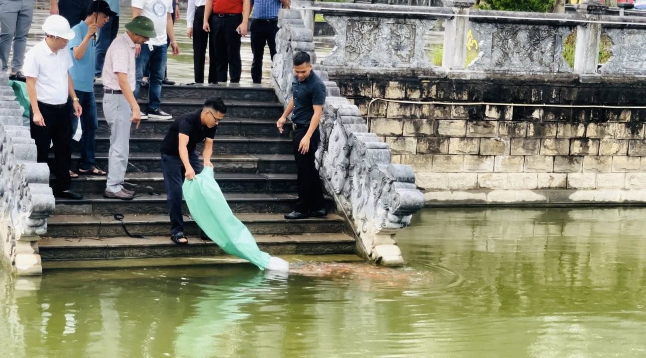 Ngay sau lễ dâng hương, các đại biểu, doanh nghiệp và con em quê hương cùng thực hiện nghi thức thả cá Koi xuống hồ trong khuôn viên di tích. Hoạt động mang ý nghĩa tri ân công đức Thái Tổ Mạc Đăng Dung và các bậc tiền nhân, đồng thời góp phần làm phong phú hệ sinh thái, bảo vệ cảnh quan môi trường, tạo điểm nhấn sinh động cho không gian linh thiêng của di tích.