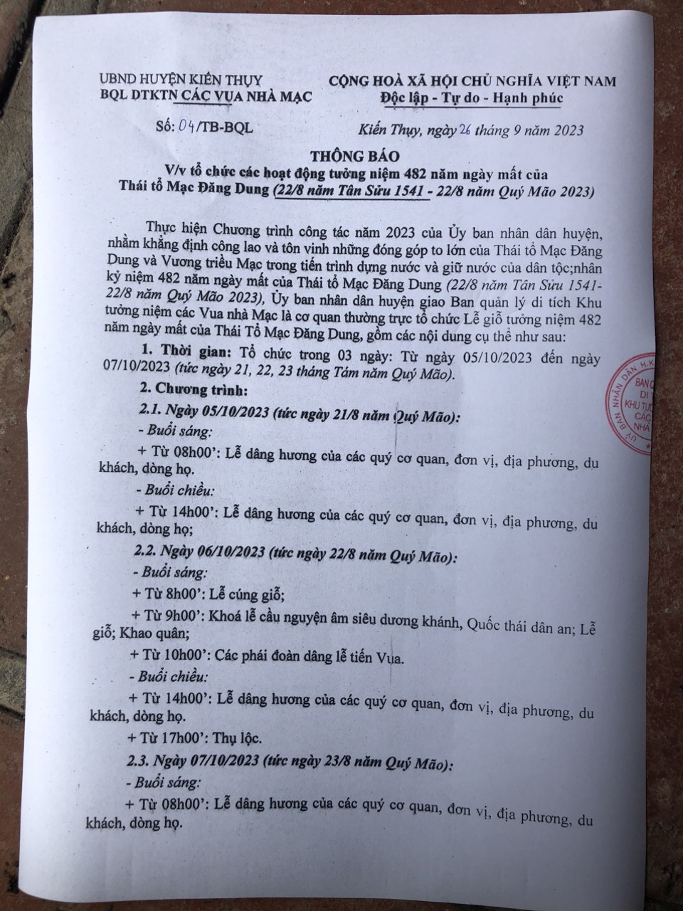 Lễ Giỗ tưởng niệm 482 năm ngày mất của Thái Tổ Mạc Đăng Dung (22/8 năm Tân Sửu 1541 - 22/8 năm Quý Mão 2023)