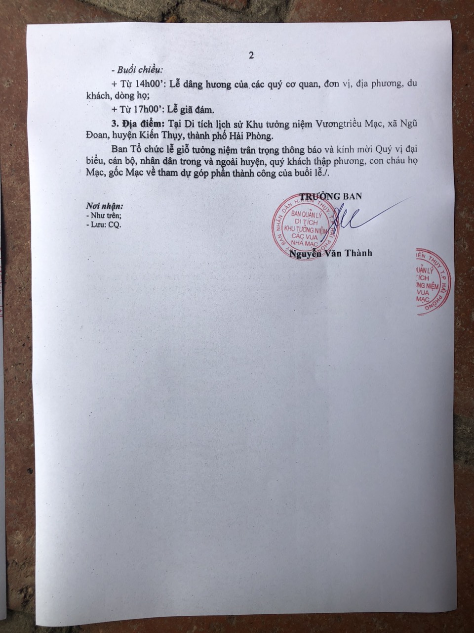 Trân trọng kính mời các quý vị đại biểu, quý khách thập phương, con cháu họ Mạc, gốc Mạc trong cả nước về dự: