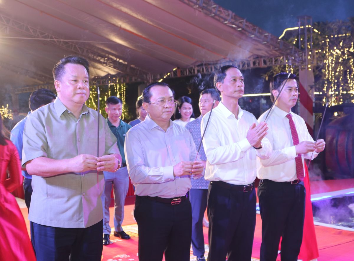 Các đại biểu dâng hương tại Khu tưởng niệm Vương triều Mạc. Ảnh: Cổng TTĐT Hải Phòng