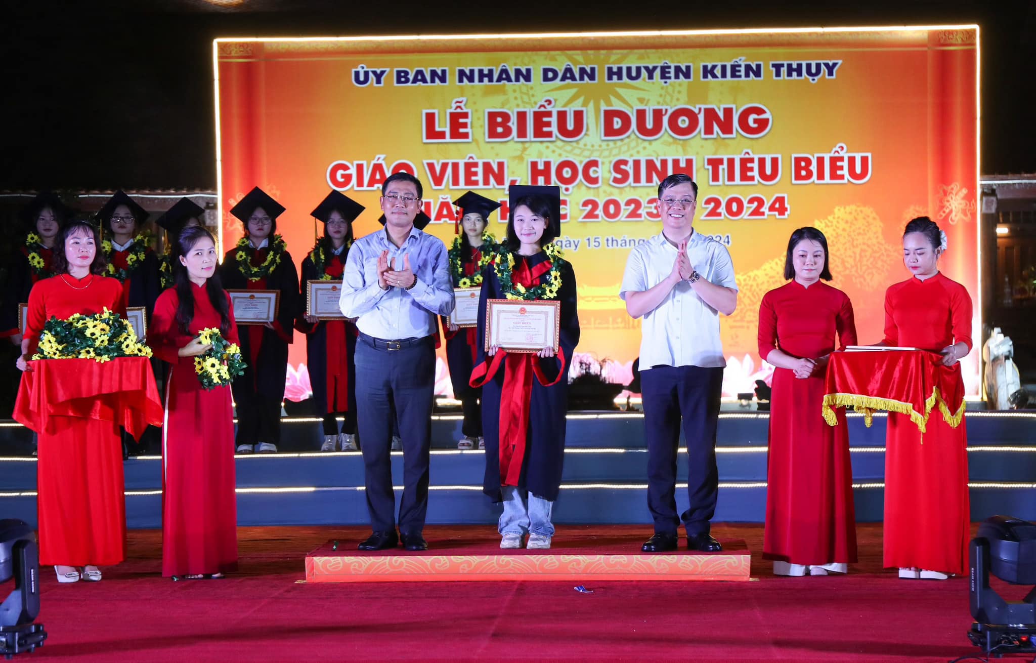 Tại buổi Lễ, Ủy ban nhân dân huyện Kiến Thụy đã biểu dương, khen thưởng 197 học sinh đạt giải khuyến khích trở lên trong Kỳ thi chọn học sinh Giỏi cấp thành phố năm học 2023-2024. Cùng với đó, biểu dương, khen thưởng 56 giáo viên các trường có học sinh đạt giải trong Kỳ thi chọn học sinh Giỏi cấp thành phố.