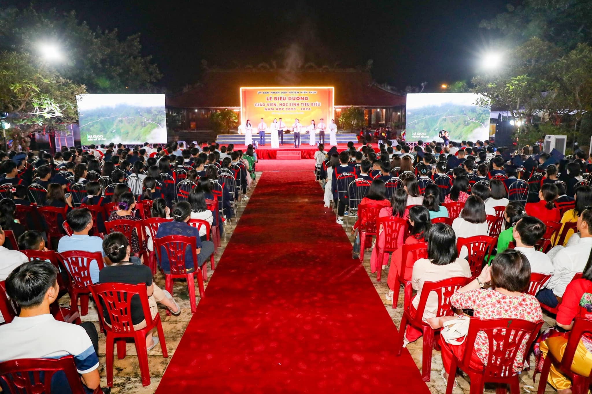 Tối ngày 15/8, Ủy ban nhân dân huyện Kiến Thụy, thành phố Hải Phòng tổ chức biểu dương, khen thưởng học sinh, giáo viên xuất sắc tiêu biểu năm học 2023-2024. Buổi lễ diễn ra trang trọng tại sân thượng của Khu Di tích vương triều Mạc, huyện Kiến Thụy.